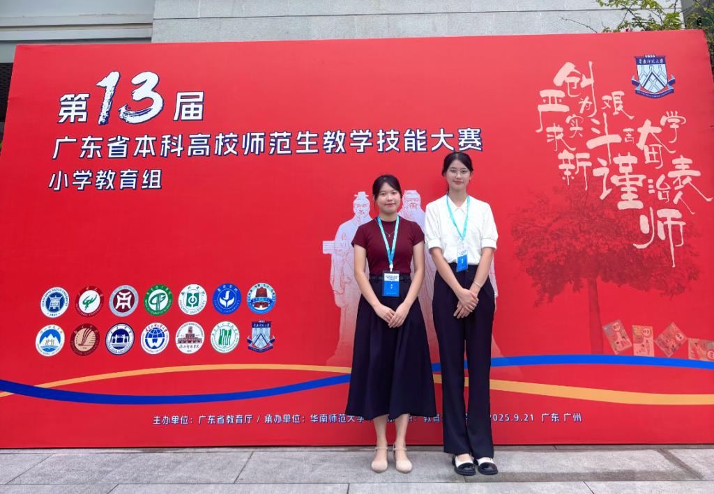 第十三届广东省本科高校师范生教学技能大赛小学教育组现场决赛于 2025 年 9 月 21 日在华南师范大学拉开帷幕,广州华商学院教师教育学院小学教育系师生再一次在全省舞台上展现华商教院人的教学素养与专业实力。