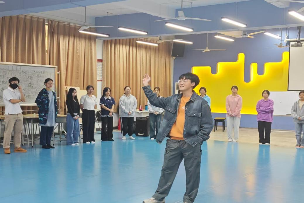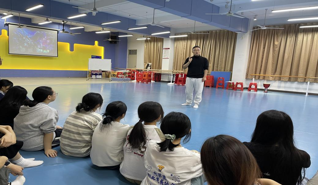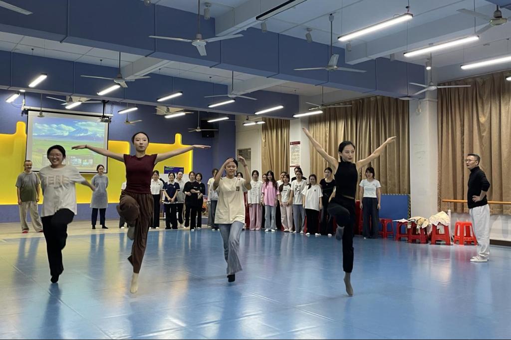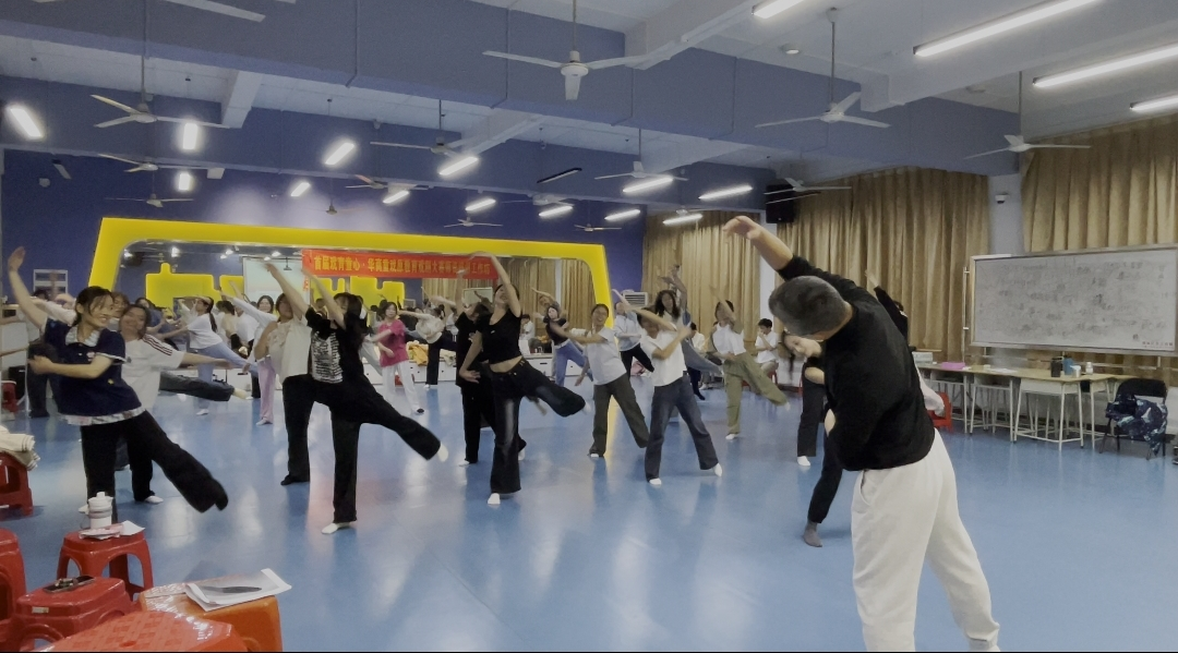 当日下午,星海音乐学院舞蹈学院副教授贾东霖以“破冰互动”开启课堂。随着老师口令,学员们迅速做出对应动作,在快节奏反应中放松身心、凝聚团队。随后,贾老师聚焦“肢体语言及形体表达”,带领学员练习四个核心舞蹈动作,从肢体控制到情绪传递,逐一纠正细节,帮助学员掌握用身体“说话”的技巧。