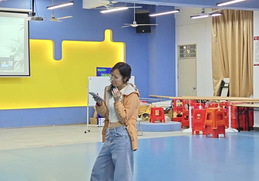 在表演过后,刘晓璐、贾东霖两位老师进行现场点评,既肯定创意亮点,也针对“情绪与台词适配度”“肢体辅助表达”提出改进建议。