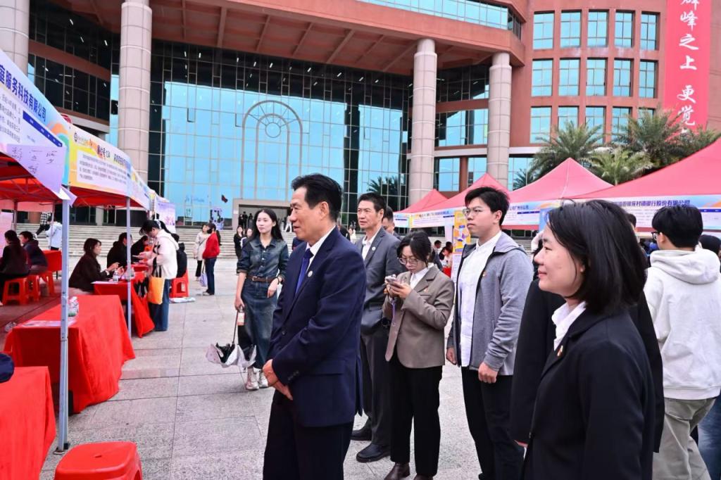 学院领导班子高度重视本次招聘活动,在王金道院长的带领下,学院领导班子、三办负责人及学生辅导员全程参与,深入现场跟进招聘会开展情况。活动期间,尽管天气时有波动,王院长等领导仍多次前往招聘区域,先后走访了广州增城区华商外语实验幼儿园、大参林医药集团股份有限公司等摊位,与企业负责人交流用人需求,同时了解用人单位对学院学生的评价与期待。广州增城区华商外语实验幼儿园负责人提到,此前已有教师教育学院的实习生在园工作,学生们的专业素养与工作表现都很出色,希望后续能与学院建立更稳定的人才输送合作;大参林医药集团相关招聘人员也表示,十分认可学院学生的综合能力,期待有求职意向的同学积极投递简历,加入企业团队。